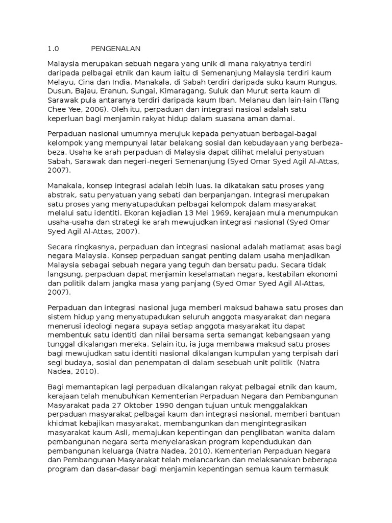 Kepentingan Perpaduan Dan Integrasi Nasional Pdf